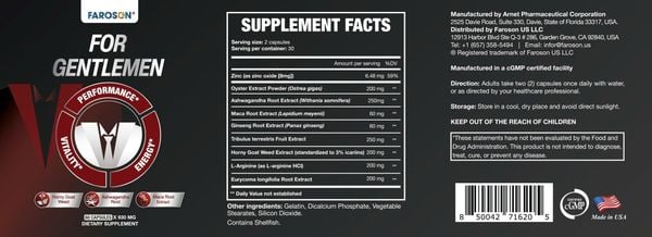 - L-Arginine (121 mg): Hỗ trợ lưu thông máu, cải thiện sức bền và khả năng sinh lý.