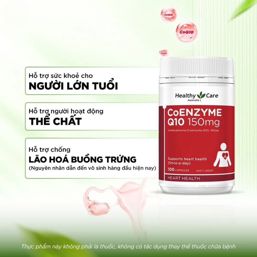 Viên uống Coenzyme Q10 150mg của Healthy Care với hàm lượng CoQ10 cao, giúp duy trì hiệu quả chỉ số cho.les.terol trong cơ thể.