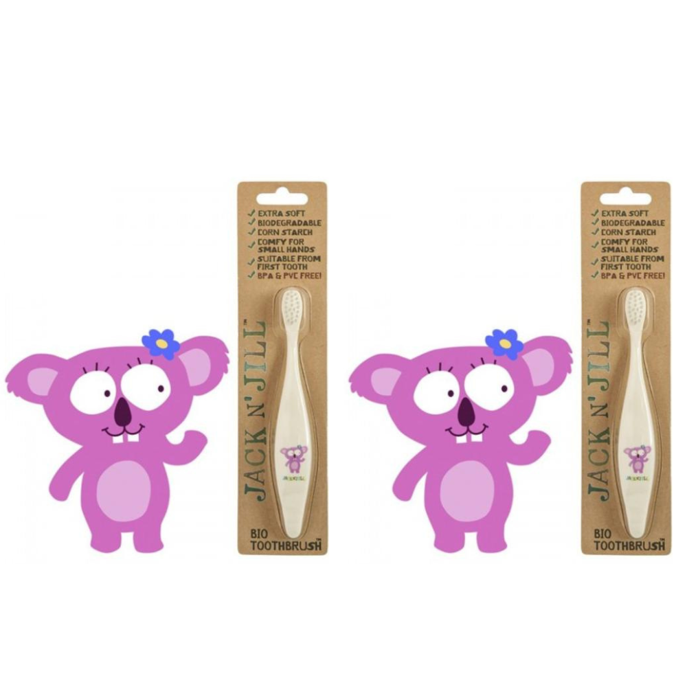 Bàn chải đánh răng Jack N' Jill thuộc dòng bàn chải sinh học cao cấp với bộ phận tay cầm được làm từ tinh bột ngô hữu cơ, 100% không biến đổi gen (GMO), thân thiện với môi trường nhờ khả năng tự phân hủy và an toàn tuyệt đối cho sức khỏe của bé khi sử dụng.