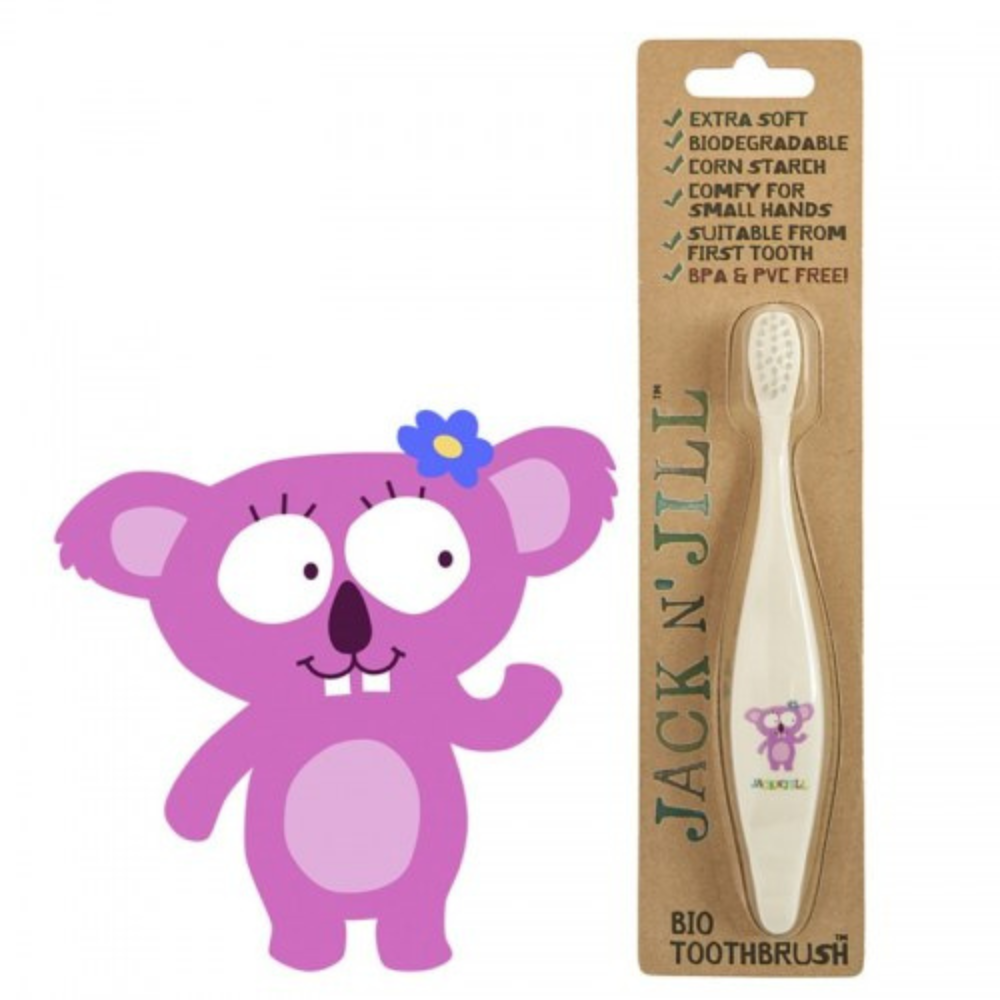 Cũng như cũng như kem đánh răng Jack N'Jil Bàn chải đánh răng cho bé được làm từ các thành phần sinh học tự nhiên an toàn cho bé.