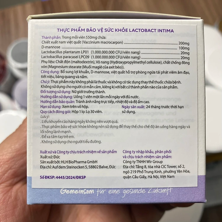 Lactobact Intima Viên Uống Bổ Sung Men Vi Sinh Cho Phụ Nữ Của Đức là sự lựa chọn tiện lợi, an toàn để bảo vệ vùng kín mỗi ngày. Sản phẩm chứa bộ 3 thành phần đột phá được kiểm chứng lâm sàng gồm: 2 tỷ lợi khuẩn x Cranberry x D-Mannose, kết hợp cùng công nghệ Micro Encapsulated X5 hiệu quả giúp hỗ trợ điều trị viêm, nấm, ngứa, đồng thời giảm tái phát viêm phụ khoa và tiết niệu cùng lúc.