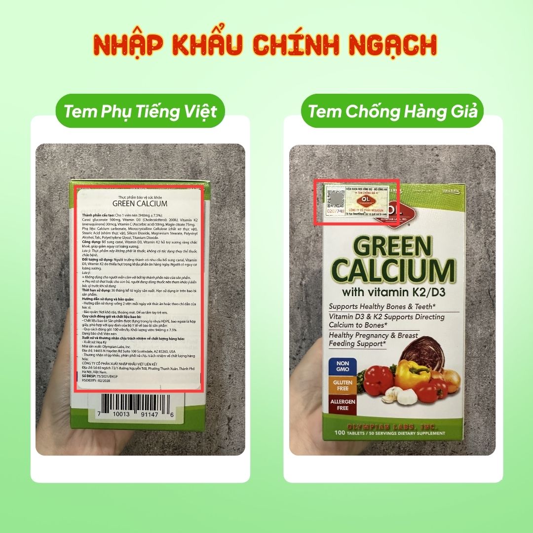 Olympian Labs Viên Uống Bổ Sung Canxi Hữu Cơ Green Calcium - Nhập Khẩu Chính Ngạch Mỹ là sản phẩm canxi hữu cơ được chiết xuất từ rau củ quả, dễ hấp thu và an toàn cho mẹ bầu và phụ nữ cho con bú.