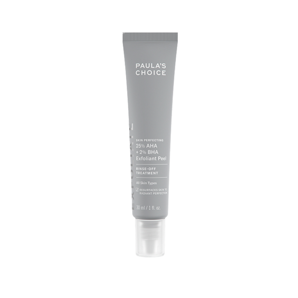 Thành phần - Thành phần chính: Phức hợp 25% AHA: Làm giảm sự xuất hiện của nếp nhăn do tác hại của ánh nắng mặt trời. 2% BHA: Làm sạch sâu và thông thoáng lỗ chân lông, ngăn ngừa mụn trứng cá. Chiết xuất hoa đậu biếc: Làm dịu làn da mẩn đỏ và kích ứng - Thành phần khác: Water (Aqua), Aminomethyl Propanol (pH adjuster), Glycolic Acid (alpha hydroxy acid/exfoliant), Lactic Acid (alpha hydroxy acid/exfoliant), Mandelic Acid (alpha hydroxy acid/exfoliant), Isoamyl Laurate (emollient), Tartaric Acid (alpha hydroxy acid/exfoliant), Propanediol (hydration), Salicylic Acid (beta hydroxy acid/exfoliant,) Malic Acid (alpha hydroxy acid/exfoliant), Butylene Glycol (texture enhancer), Clitoria Ternatea (Butterfly Pea) Flower Extract (antioxidant/skin-soothing), Sodium Hyaluronate (skin replenishing), Glycyrrhetinic Acid (licorice-derived skin soothing), Glycerin (skin-replenishing), Tocopherol (vitamin E/antioxidant), Bisabolol (skin soothing), Allantoin (skin soothing), Hydroxyethylcellulose (thickener), Hydrogenated Lecithin (skin-restoring), Xanthan Gum (thickener), Polyglyceryl-4 Laurate (emulsifier), Polyacrylate Crosspolymer-6 (stabilizer/thickener), Titanium Dioxide (Cl 77891) (mineral-derived pigment), Mica (CI 77019) (mineral-derived pigment), Phenoxyethanol (preservative).