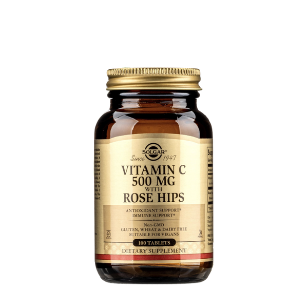 Solgar Viên Uống Bổ Sung Vitamin C 500MG Kết Hợp Quả Hồng Hạc Rose Hips Tăng Đề Kháng 100 Viên là sản phẩm bổ sung vitamin C kết hợp với chiết xuất từ quả hồng hạc, giúp tăng cường hệ miễn dịch và bảo vệ sức khỏe. Sản phẩm được đóng gói trong chai 100 viên.