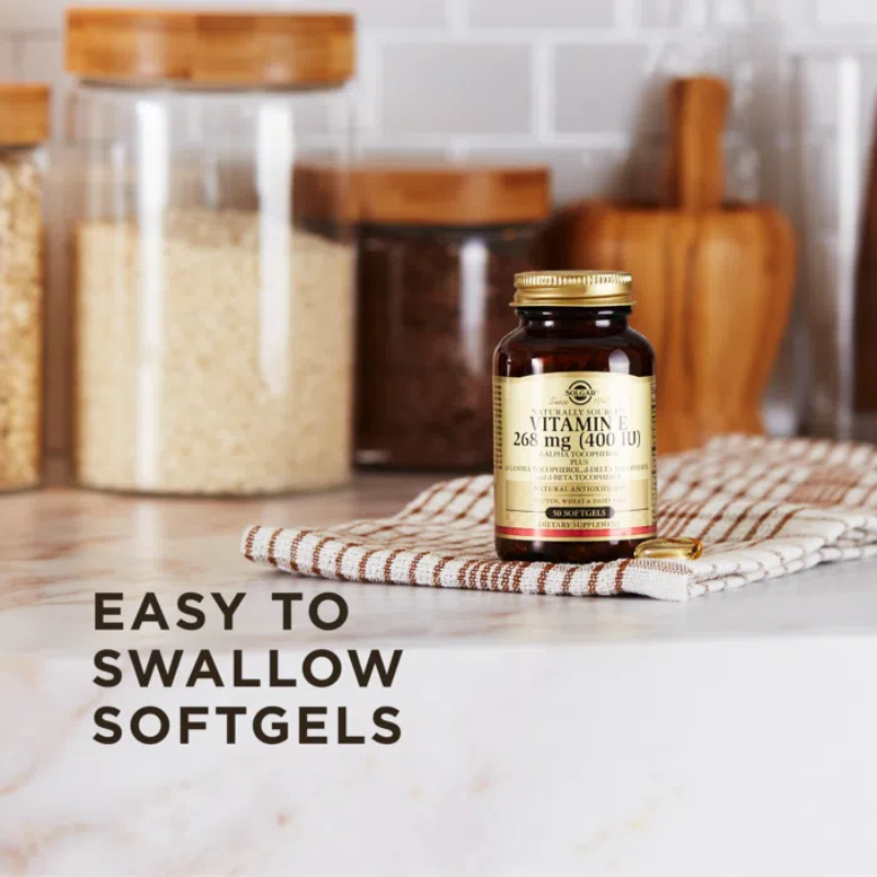 • Là sản phẩm vitamin E Solgar 400 IU cao cấp – sử dụng nguồn nguyên liệu tự nhiên, không chất tổng hợp.