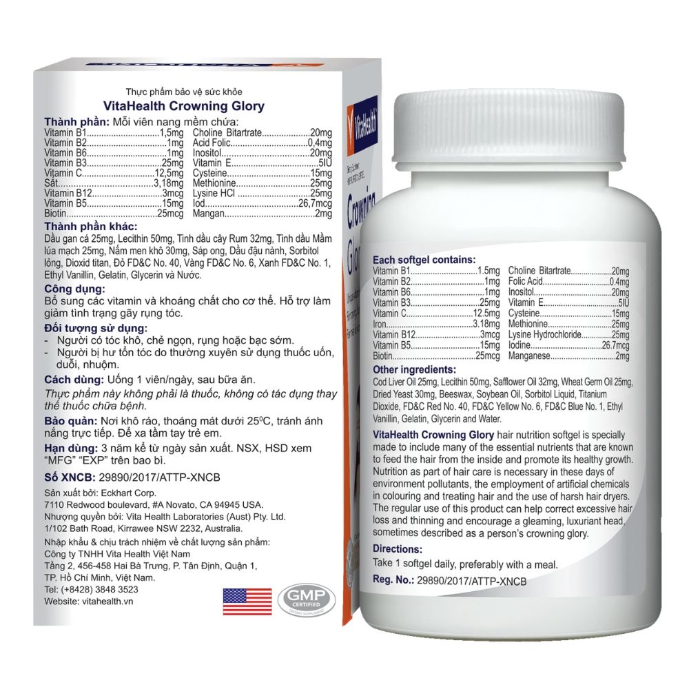 VitaHealth Viên Uống Crowning Glory Bổ Sung Vitamin Hỗ Trợ Tóc Chắc Khỏe 30 Viên
