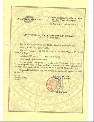 VitaHealth Viên Uống Ginkgo Forte Hỗ Trợ Tuần Hoàn Máu Não 30 Viên