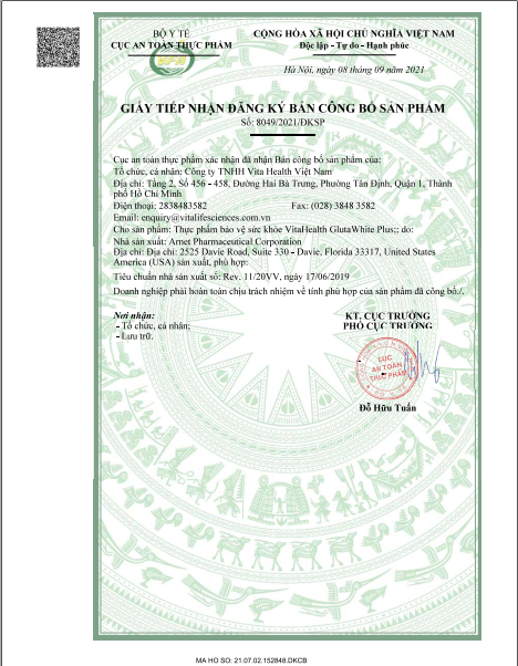 Viên uống trắng da, ngăn lão hóa VitaHealth Gluta White Plus là thực phẩm bảo vệ sức khỏe, thuộc nhóm Hỗ trợ làm đẹp, được sản xuất tại Adh Health Producrs, Inc, USA. Sản phẩm được bào chế dưới dạng viên, dùng trực tiếp bằng đường uống, thích hợp sử dụng cho người có nhu cầu làm đẹp, người thường xuyên xúc động với các chất độc hại từ môi trường.