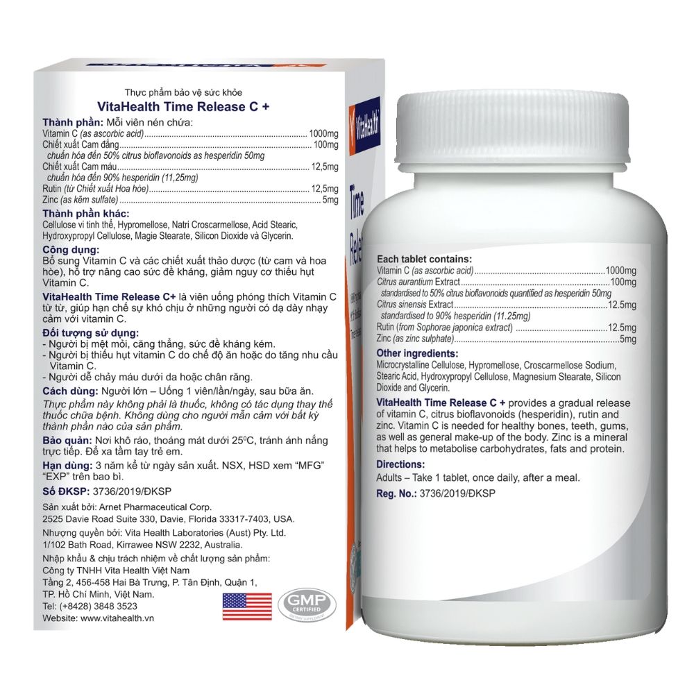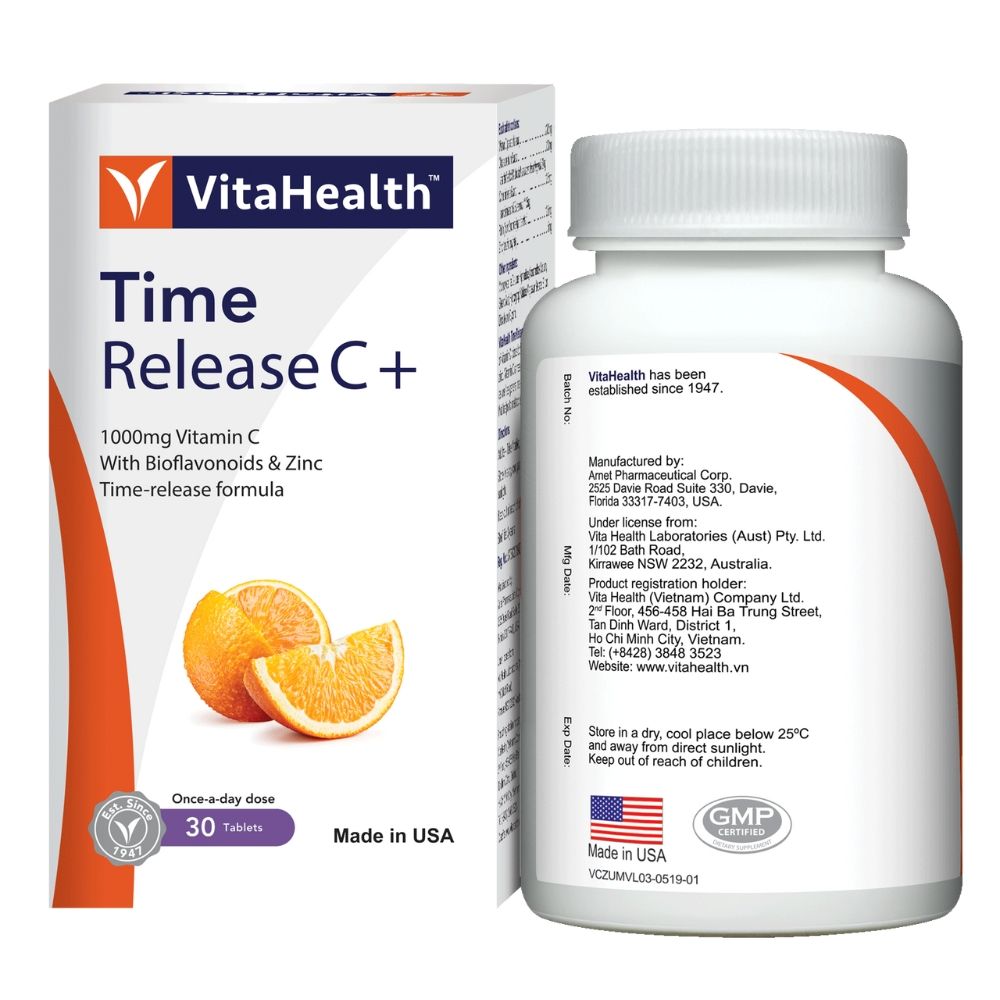 VitaHealth Viên Uống Time Release C+ Hỗ Trợ Bổ Sung Vitamin C Phù Hợp Cho Cả Người Bị Dạ Dày 30 Viên