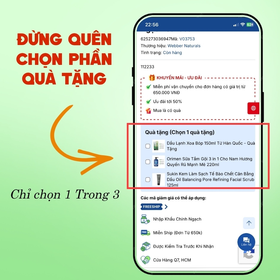 Miễn phí vận chuyển cho đơn hàng có giá trị từ 650.000 VNĐ
